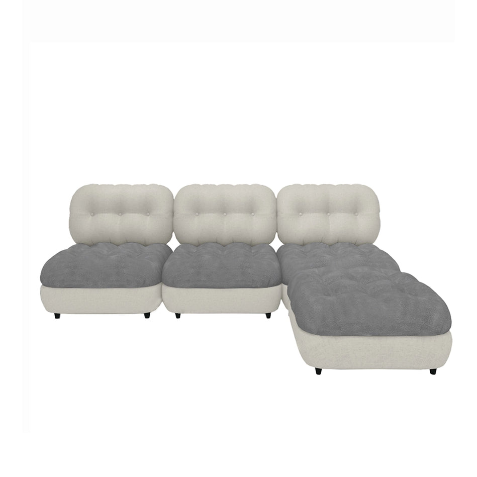 Your sofa reimagined. The Marlow Trio Modular Sofa With Ottoman allows for endless compositions, using lounge chair armless chairs, straight and corner elements and lounge chairs. Made of modular sofa units, creatively mix the modular parts together to bring the best out of your living room. All elements are upholstered in Water Repellent fabric, padded and done by hand. Seat and back cushions in high density foam. Structure in metal and wood. Sit back, relax and enjoy a sofa that supports you at the right places.