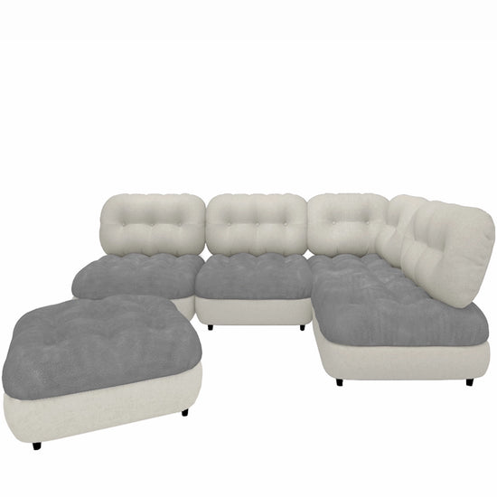 MATERIALS Fixed Seat Cushion Sectional Sofa, Adjustable Seat Arrangement Water Repellent, 100% Polyester Fabric Tufted Button Seat & Back Cushion Black Colour Bun Feet