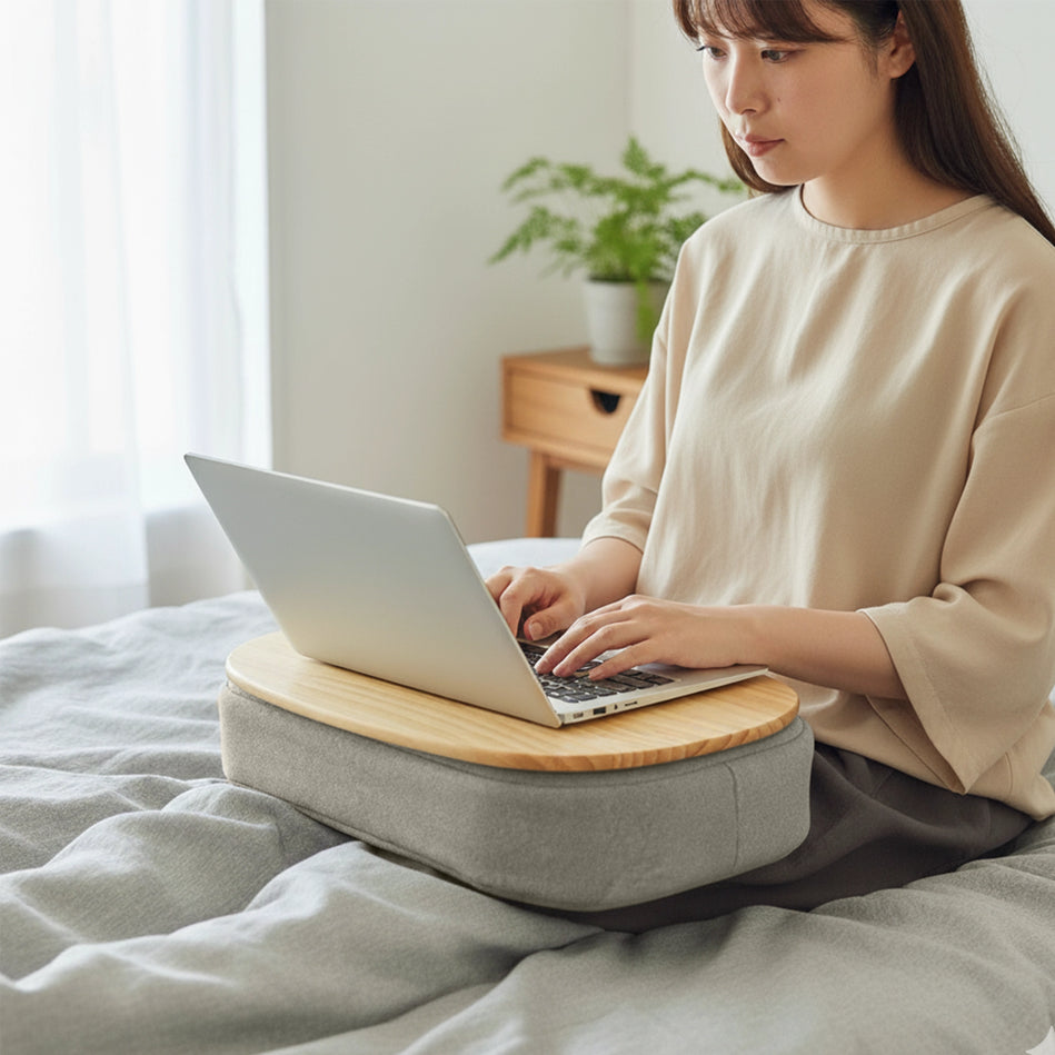 Work anywhere in comfort with this ergonomic Wooden Lap Desk Cushion. Featuring a natural wood top and soft cushion base, it’s the perfect portable workstation. Ideal as a bed desk, couch desk, or cushion lap table lightweight, stable, and designed for focused productivity.
