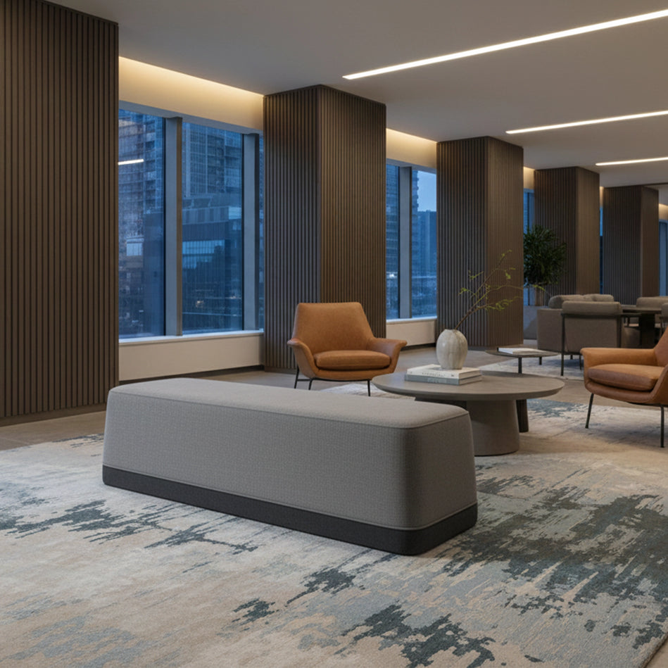 Sleek, soft-edged, and built to last. The Atilla Bench blends clean design with commercial-grade comfort. Upholstered in premium fabric with a bold contrast base, it adds modern elegance to office lobbies, lounges, or hospitality spaces. Durable, versatile, and made for high-traffic style.