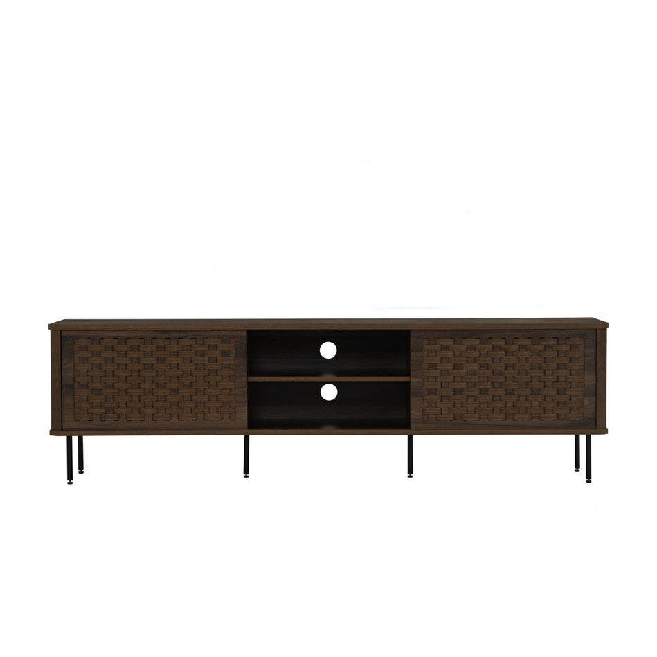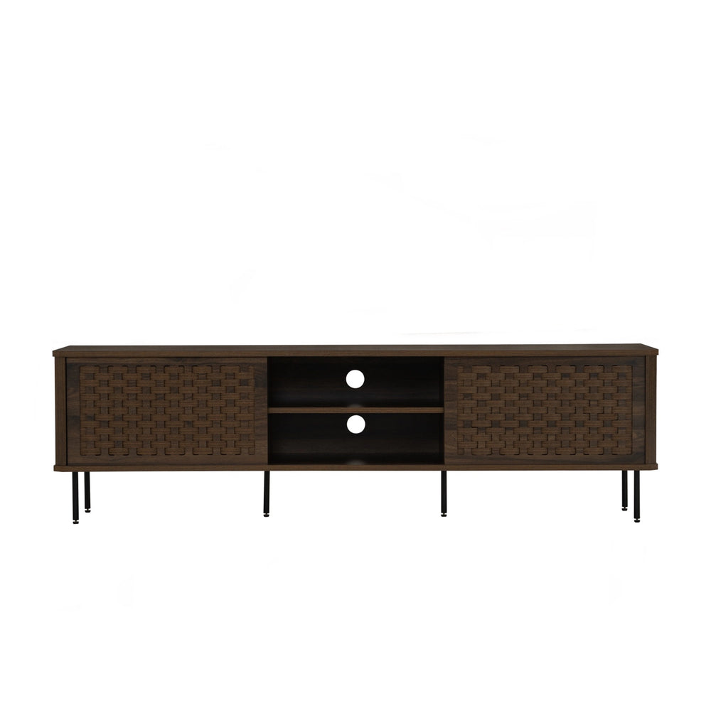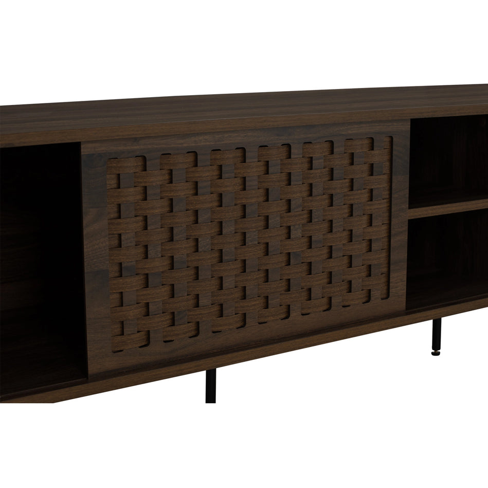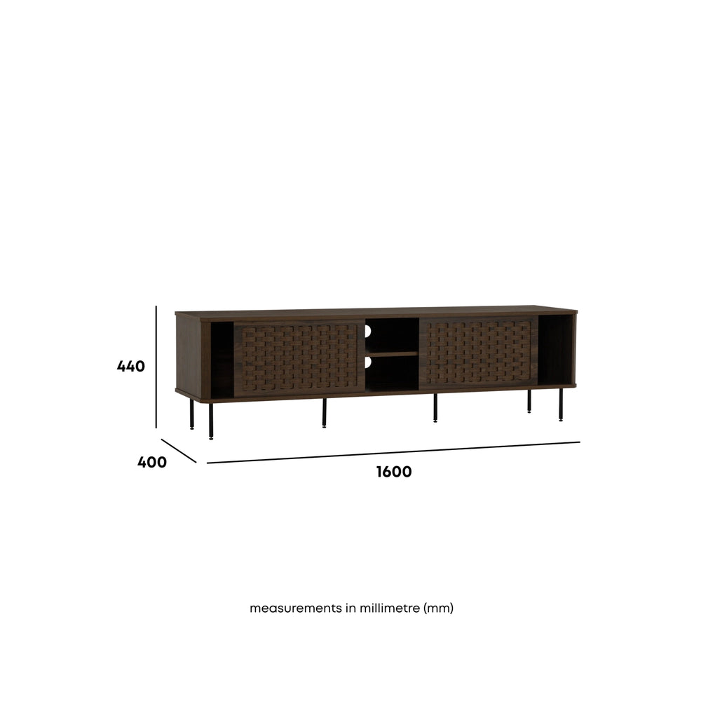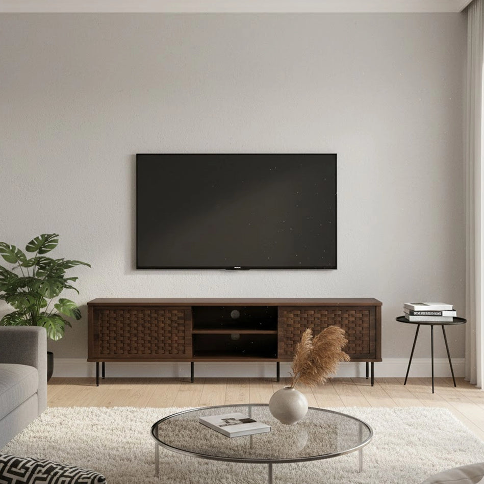 The Breda 1.6M TV Cabinet fuses mid-century charm with modern function. Woven wood sliding doors add artisanal texture, while the dark walnut finish and slim black legs create a clean, elevated look. A perfect wood media console for minimalist homes and stylish entertainment setups.