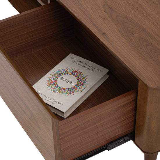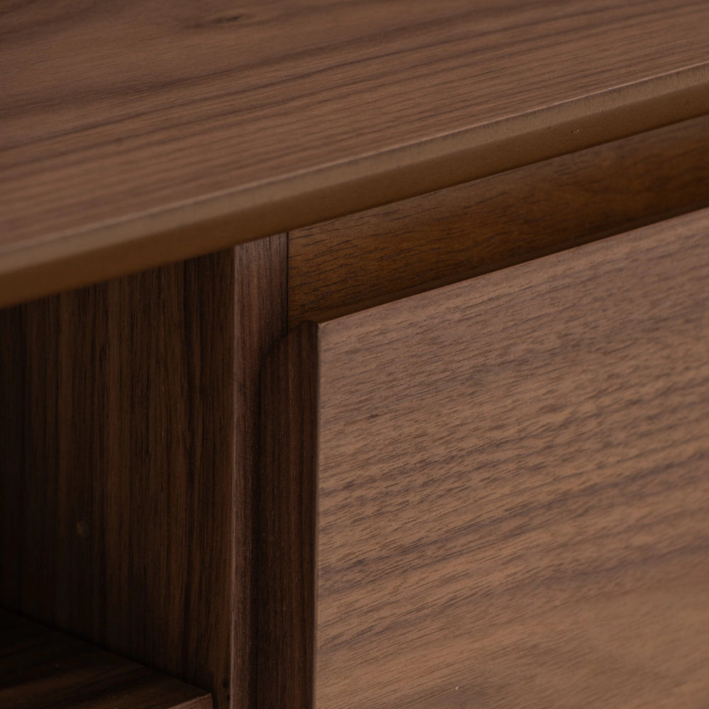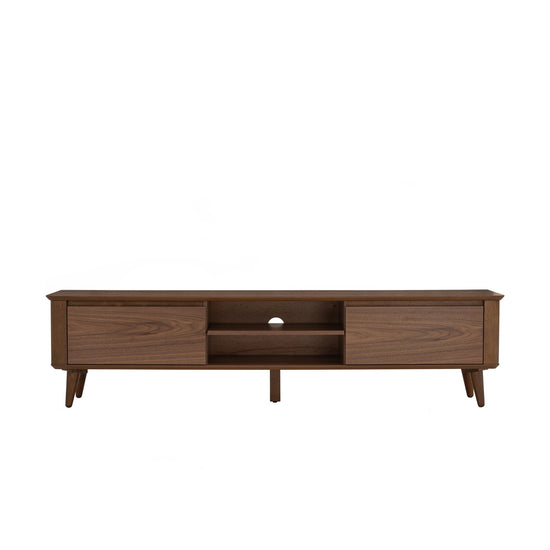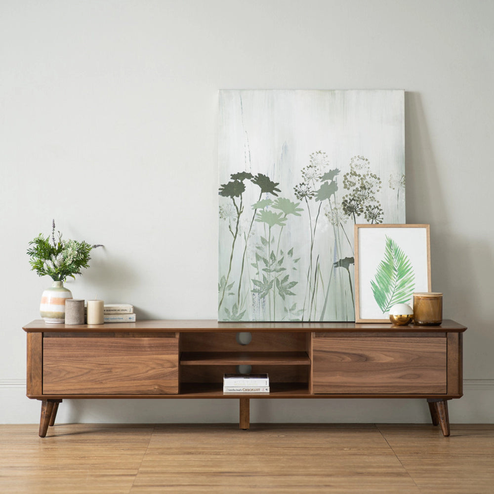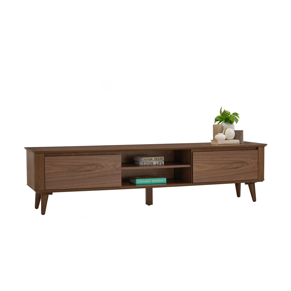 The Coen 1.8M TV Cabinet blends mid-century charm with modern function. Crafted with cocoa-toned Malaysian oak legs and a walnut veneer body, it offers generous storage and cable management in a sleek form. A timeless piece designed to elevate contemporary and transitional living spaces.