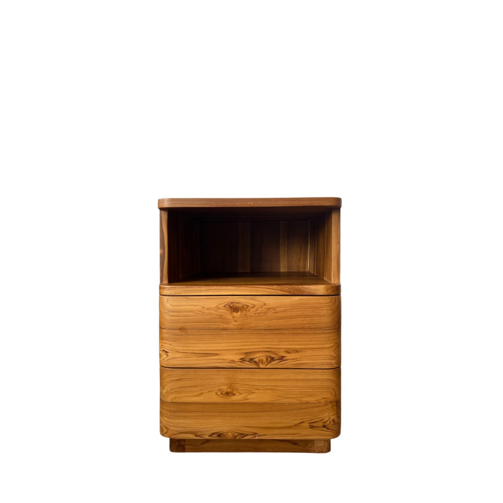 Cove Teak Bedside Table crafted from solid teak wood, this elegant bedside table offers durability and timeless charm. Featuring a rich wood grain, natural knots, and a warm finish, each piece is uniquely beautiful. Expertly smoothed and precision-carved, it combines style and functionality to enhance any bedroom.