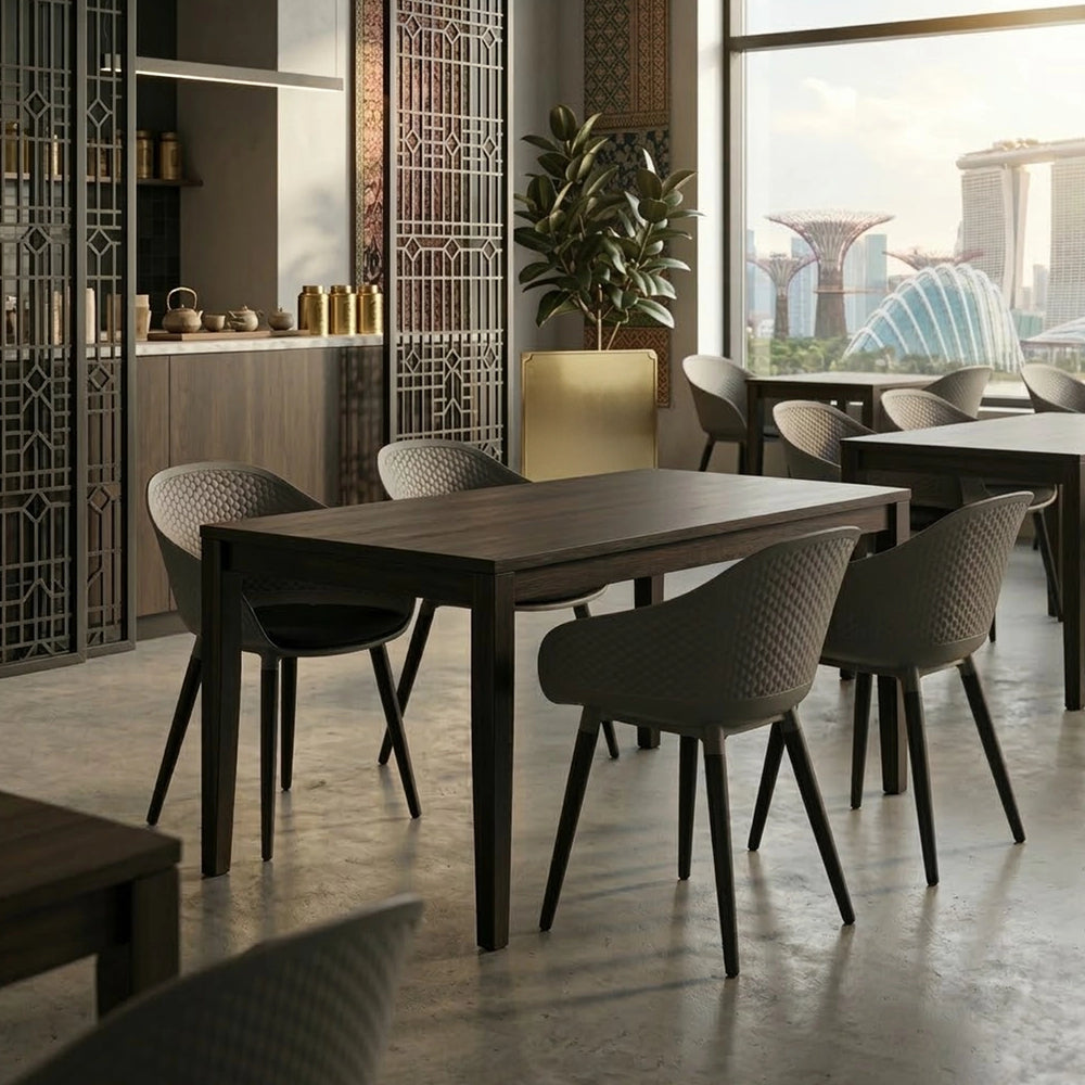 The Nexus Dining Chair features black legs and a grey seat, creating a simple and modern dining chair design. This modern dining chair is easy to match with different spaces and suitable for everyday use. It offers a comfortable seat with a clean look. A stylish dining chair that fits well in dining rooms, cafés, and shared spaces.
