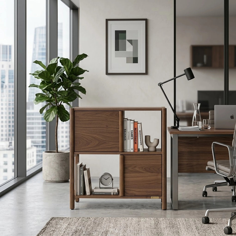 The Oslo Bookshelf – 0.85m features a walnut finish that adds warmth and timeless style to any space. Built with a Malaysian oak frame and MDF with walnut veneer, it is both sturdy and elegant. Its compact design offers open shelves for books or décor, along with two lower cabinets for hidden storage, making it a practical choice for living rooms, bedrooms, or study areas in both modern and classic interiors.