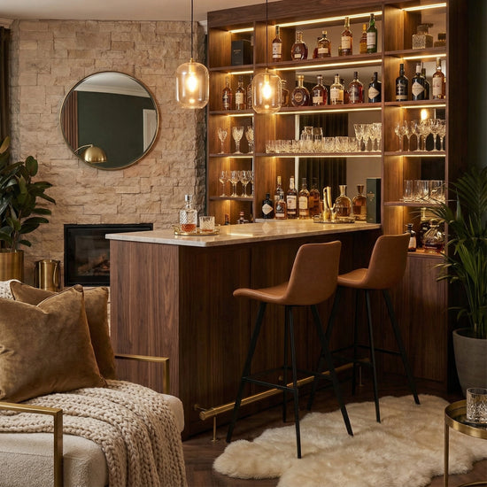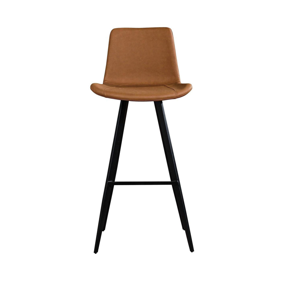 Refined yet relaxed, the Stig Bar Stool pairs a contoured faux leather seat with sleek black steel legs. The mid-back design offers comfort, while its warm caramel tone adds vintage charm. Ideal for modern bars and cozy kitchen counters alike.